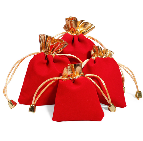 Bolsita de regalo para maquillaje, bolso de terciopelo rojo y algodón de franela personalizado con cordón ajustable